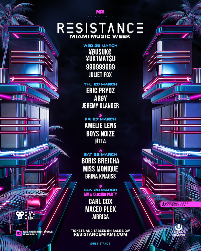 La prestigiosa marca underground de ULTRA Worldwide, RESISTANCE, ha anunciado el lineup completo de RESISTANCE Miami Music Week 2026, que se llevará a cabo del miércoles 25 al domingo 29 de marzo de 2026 en M2 Miami, como parte de la tercera temporada de su residencia en Estados Unidos.