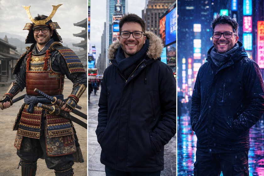 Mírate en un anuncio o “viaja” a tu lugar favorito. Otro de los apartados donde ChatGPT Images da un salto es en las transformaciones creativas. Basta con subir una foto propia y acompañarla de un prompt sencillo para obtener, en cuestión de segundos, resultados sorprendentemente convincentes. Conviene matizar que esta idea no es completamente nueva. De hecho, es una de las virtudes más destacadas de Nano Banana Pro, un modelo que nuestro compañero Javier Lacort pudo probar a fondo y que ya apuntaba en esta dirección.