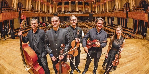 El quinteto está conformado por dos violines, viola, violonchelo y contrabajo, una configuración poco habitual que permite explorar un amplio repertorio con riqueza sonora y profundidad armónica.